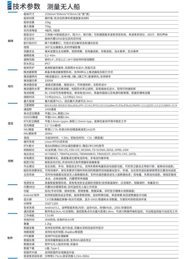 中海達iBoatBS15無人船中海達iBoatBS15無人船可用于水下地形測繪、水文測驗、疏浚通行、庫容測量iBoatBS15智能無人測量船搭載中海達8140P小型化多波束測深系統,可輕松實現內...